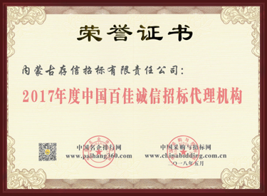 2017年度中國百佳誠信招標代理機構