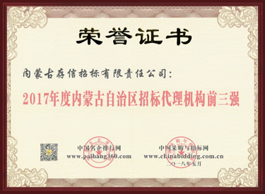 2017年度內蒙古自治區(qū)招標代理機構前三強