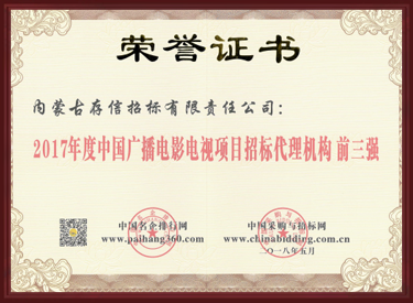 2017年度中國廣播電視項目招標代理公司前三強