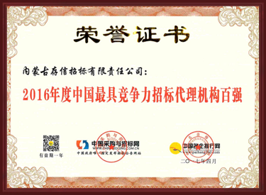 2016年度中國最具競爭力招標代理機構百強