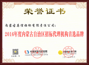 2016年度內蒙古自治區(qū)招標代理機構首選品牌