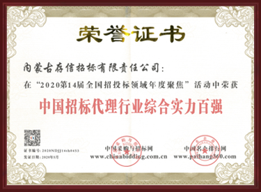 中國招標代理行業(yè)綜合實力百強