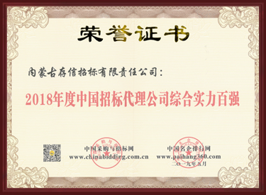 2018年度中國招標代理公司綜合實力百強
