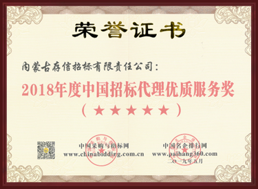 2018年度中國招標代理優(yōu)質(zhì)服務(wù)獎
