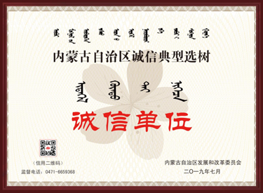 內(nèi)蒙古自治區(qū)誠(chéng)信典型選樹誠(chéng)信示范單位