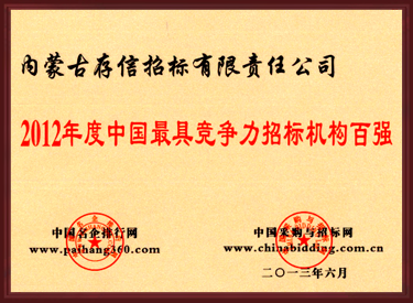 2012年度中國(guó)最具競(jìng)爭(zhēng)力招標(biāo)機(jī)構(gòu)百?gòu)?qiáng)
