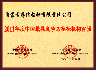 2011年度中國(guó)最具競(jìng)爭(zhēng)力招標(biāo)代理機(jī)構(gòu)百?gòu)?qiáng)