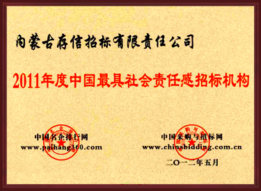 2011年度中國(guó)最具社會(huì)責(zé)任感招標(biāo)機(jī)構(gòu)
