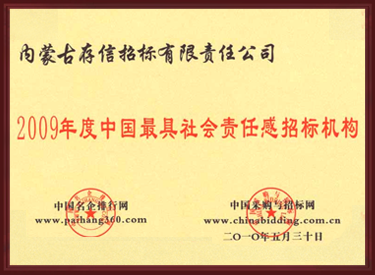 2009年度中國(guó)最具社會(huì)責(zé)任感招標(biāo)機(jī)構(gòu)