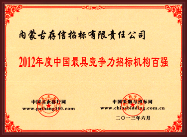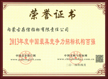2013年度中國最具競爭力招標代理機構(gòu)百強